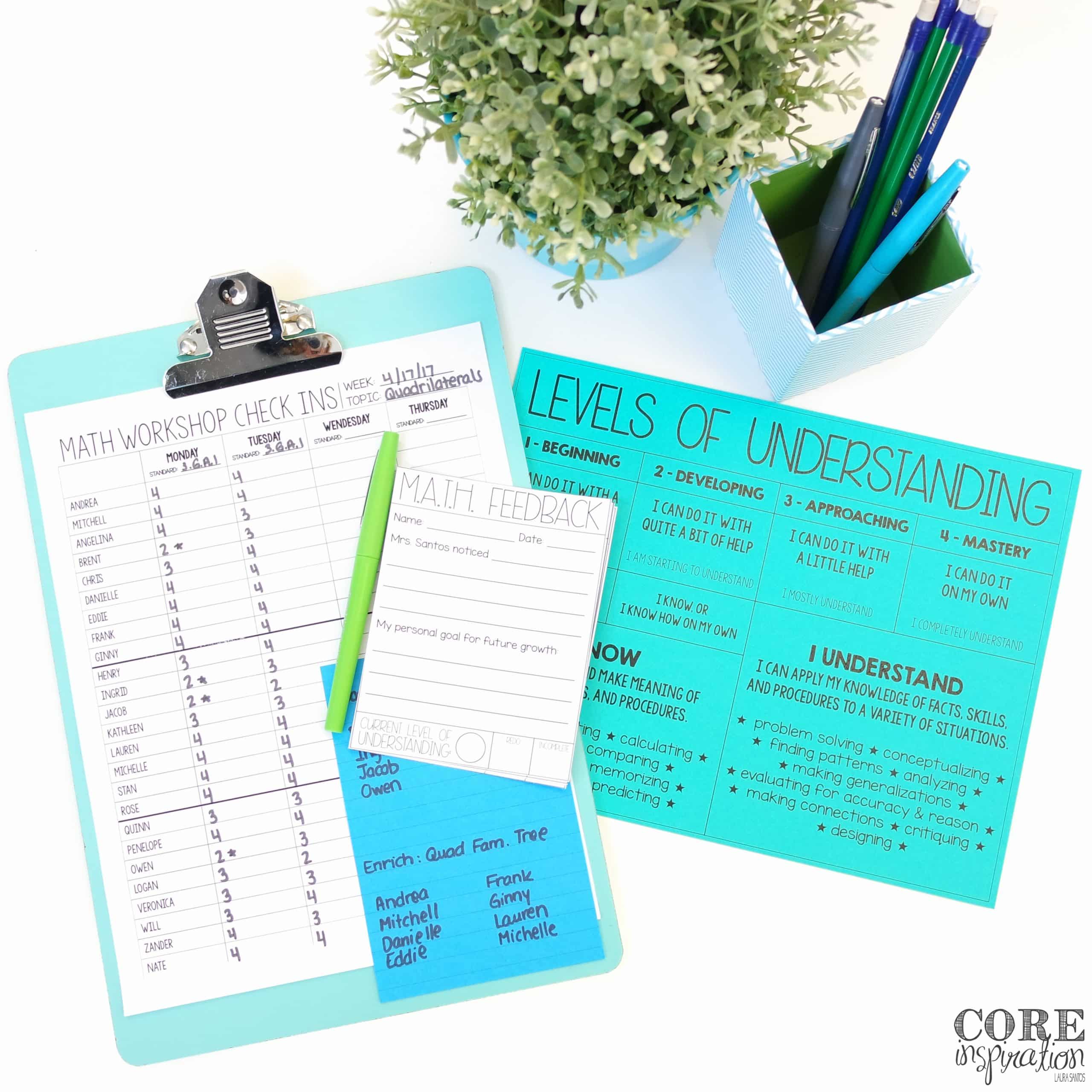 I hope these steps get you started with setting up a data tracking framework that allows you to be more present during Math Workshop (and throughout the day), makes your planning time more about planning (and less about grading), and helps you get a clear picture of your students’ levels of understanding.