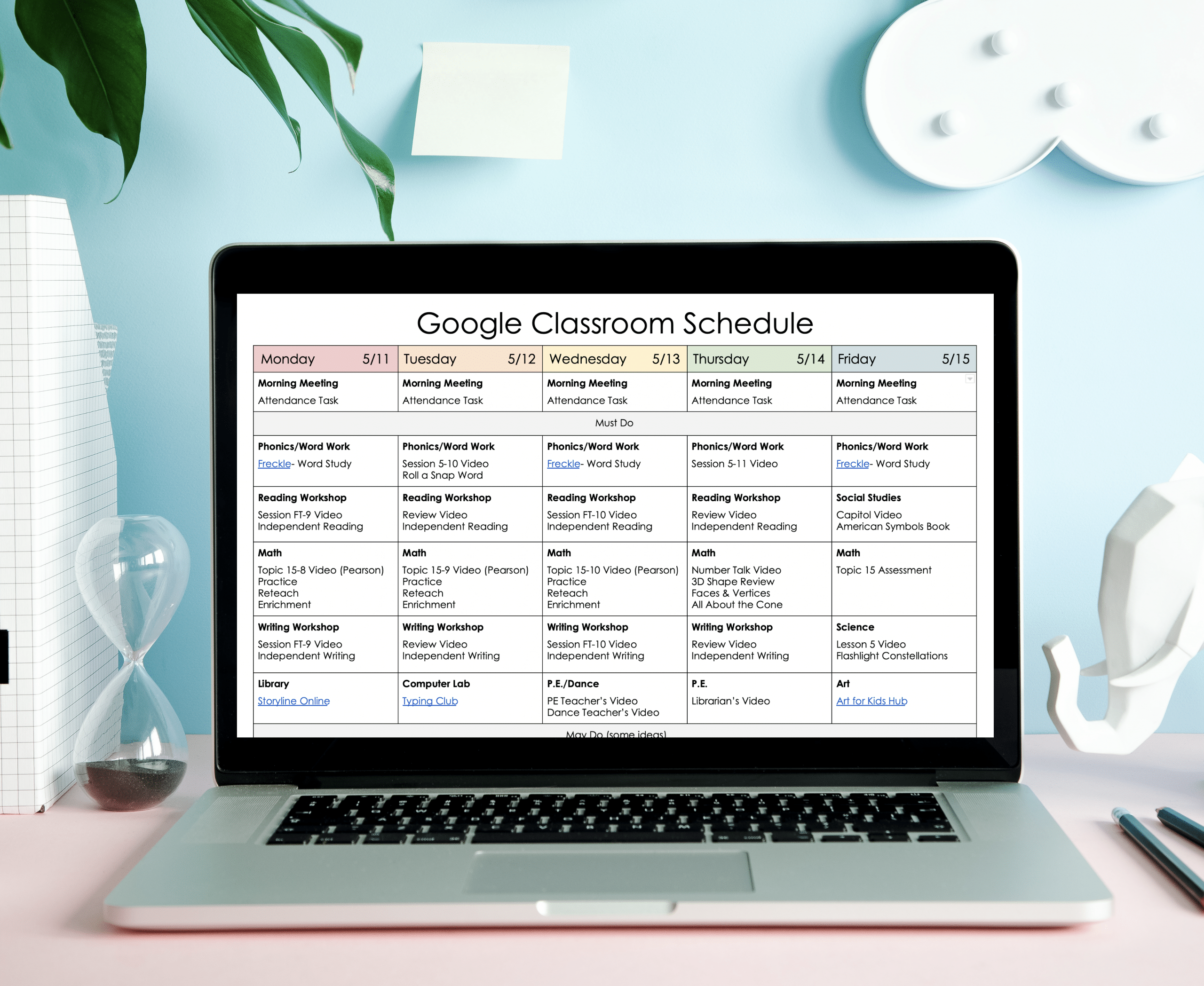 A: Before we had our first official day of distance learning, I sent an overview of our schedule, expectations, and recommendations. While emphasizing that our assignments could be done around their family’s schedule, I also encouraged families to create a routine for their students because many of our youngest learners thrive on structure.