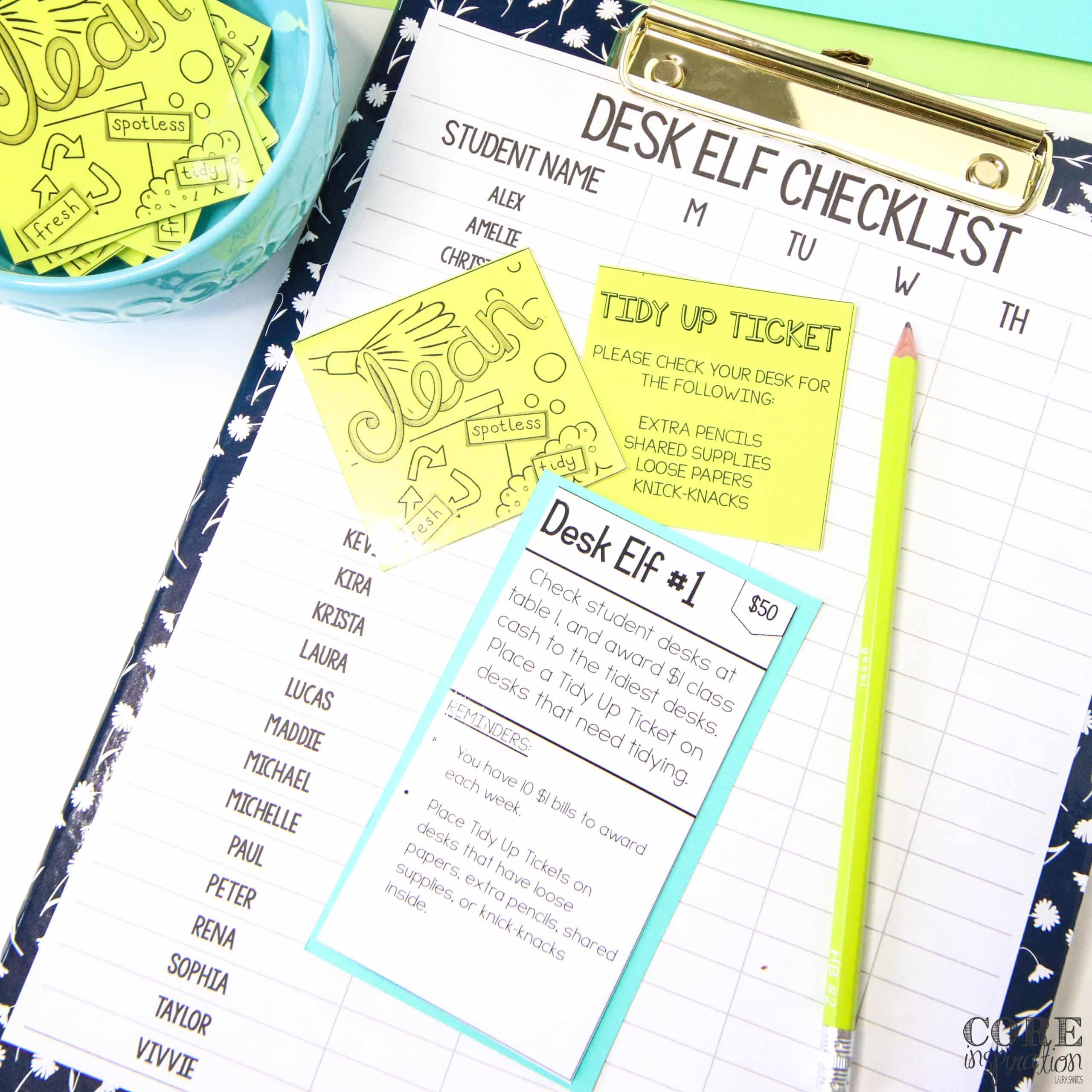 Yes. Since desk organization is part of our daily tidy-up checklist, it doesn’t take long for students to get their desk in order. To support their desk organization, I have a classroom job called Desk Elf.
